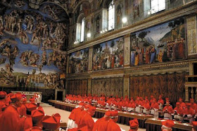 -Lugar de los cónclaves: La Capilla Sistina, dentro de la Ciudad del Vaticano. Esta capilla es famosa también por los frescos de Miguelangelo, entre ellos el Juicio Final. Al Papa le parece que ofrecen un ambiente que ayuda a pensar en Dios.