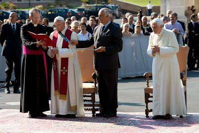 Como explicó nuestro Director General, el P. Federico Lombardi, el Santo Padre además de inaugurar este nuevo monumento procedió a la consagración del Estado de la Ciudad del Vaticano a San José y a San Miguel Arcángel. Poco antes del inicio de esta ceremonia llegó el Papa emérito, Benedicto XVI, invitado por el Papa Francisco, quien fue saludado con gran afecto por los presentes y por el personal del Gobernatorato.
