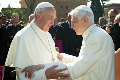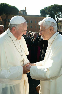 Inmediatamente llegó el Papa Francisco quien abrazó con afecto a Benedicto XVI y permanecieron juntos durante toda la ceremonia. Después de un breve saludo del Cardenal Giuseppe Bertello, Presidente del Gobernatorato, y de la intervención del Cardenal Presidente emérito, Giovanni Lajolo, quien ilustró el significado del nuevo monumento y de la fontana dedicada a San José, que fue inaugurada anteriormente, el Santo Padre dirigió unas palabras y sucesivamente rezó dos oraciones de consagración impartiendo, en fin, la bendición apostólica a toda la asamblea.