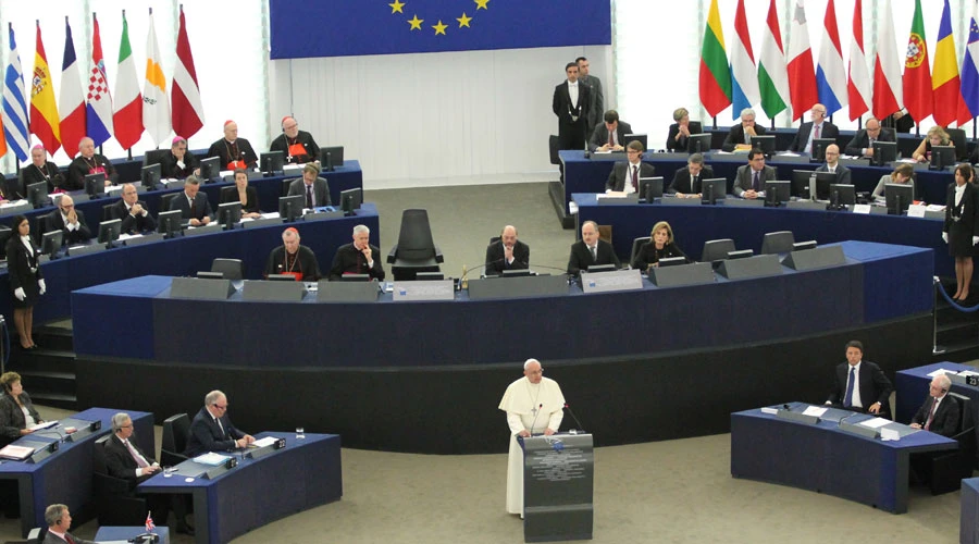 ESTRASBURGO, 25 Nov. 14 / 10:08 am (ACI/EWTN Noticias).- “Construir juntos la Europa que no gire en torno a la economía, sino a la sacralidad de la persona humana”, exhortó este martes el Papa Francisco en su discurso al Parlamento Europeo en su sede de Estrasburgo (Francia), en el que también llamó a trabajar para que el continente recupere su identidad y redescubra su alma.